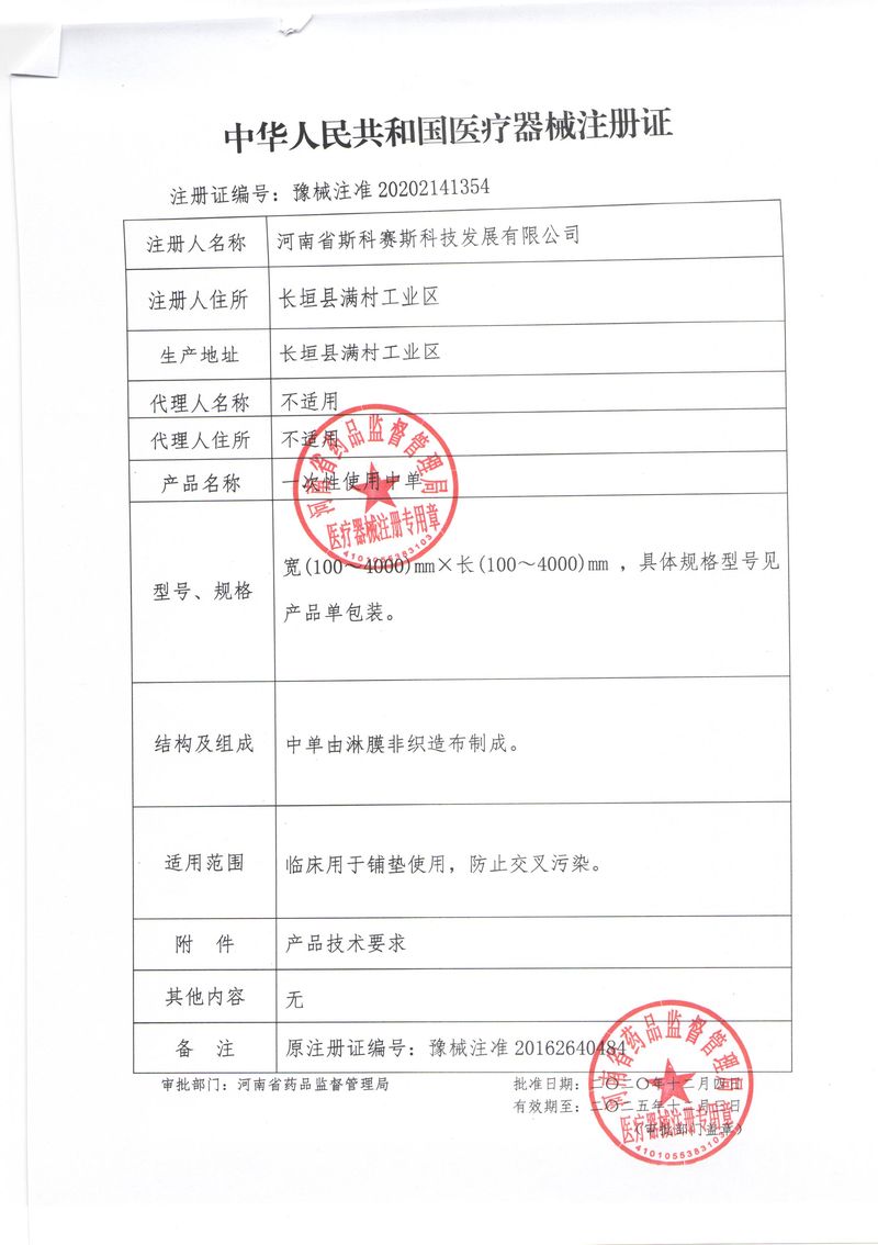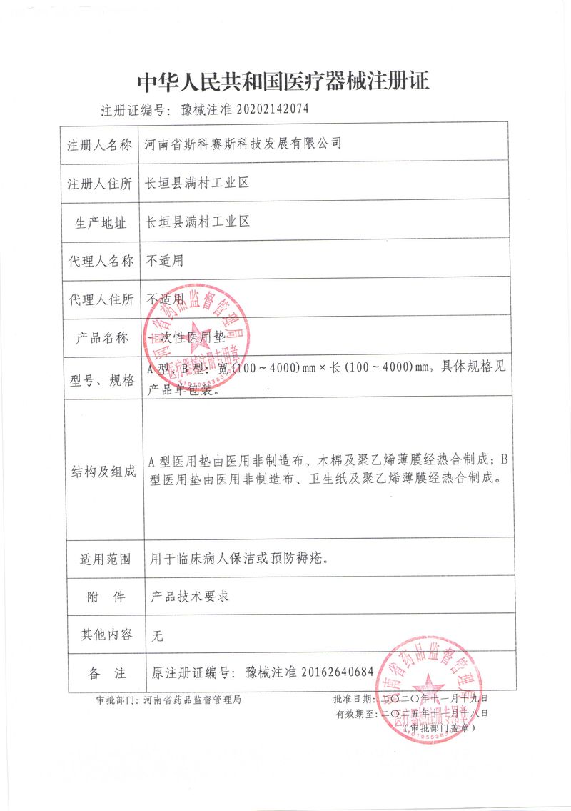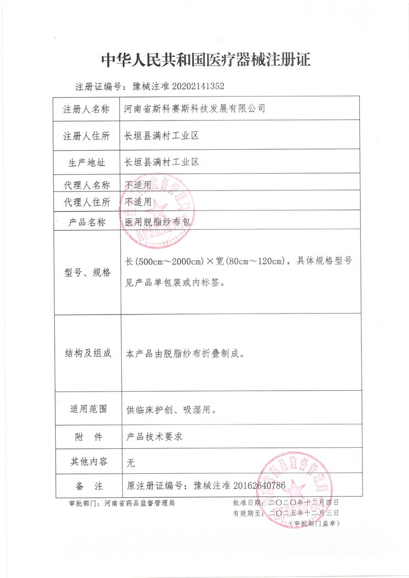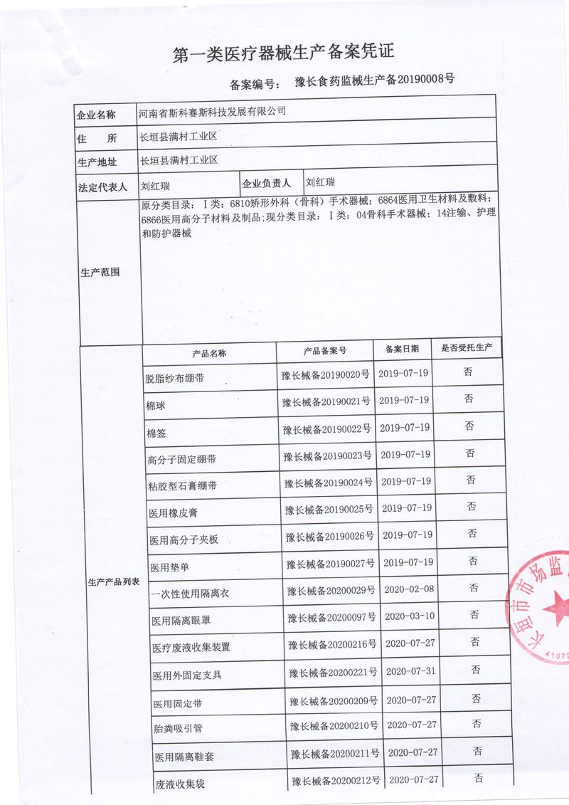 河南省斯科賽斯科技發(fā)展有限公司創(chuàng)建于 2011 年,位于“中國(guó)醫(yī)療耗材之都”- 河南省長(zhǎng)垣縣,西臨 308 省道,南靠新菏鐵路,北依長(zhǎng)濟(jì)高速,交通便捷,經(jīng)濟(jì)發(fā)達(dá),環(huán)境優(yōu)美。斯科賽斯積極進(jìn)入醫(yī)療健康和服務(wù)領(lǐng)域,秉承為用戶(hù)創(chuàng)造價(jià)值的理念,專(zhuān)注于醫(yī)用耗材解決方案的研發(fā)和運(yùn)營(yíng),并為用戶(hù)提供完善的產(chǎn)品解決方案;  斯科賽斯主要生產(chǎn)醫(yī)用麻醉系列、醫(yī)用高分子系列、醫(yī)用敷料包系列、醫(yī)用無(wú)紡布系列、醫(yī)用防護(hù)系列、醫(yī)用脫脂棉系列、生物材料制品類(lèi)等七大類(lèi)、100 多個(gè)品種、400 多個(gè)規(guī)格的產(chǎn)品。公司占地面積約 30000 平方米,建筑面積20000 平方米,擁有 10 萬(wàn)級(jí)的凈化車(chē)間總面積 10000 平方米。擁有國(guó)際先進(jìn)水平的生產(chǎn)設(shè)備和檢測(cè)儀器,技術(shù)裝備精良,檢測(cè)手段完善,為醫(yī)療行業(yè)的不斷發(fā)展進(jìn)步提供保障。公司順利通過(guò) ISO9001、ISO13485 質(zhì)量管理體系認(rèn)證。  斯科賽斯堅(jiān)持研發(fā)高科技新產(chǎn)品,力爭(zhēng)在醫(yī)療器械關(guān)鍵領(lǐng)域取得技術(shù)和研發(fā)的重大突破;立足國(guó)內(nèi)和國(guó)際兩個(gè)市場(chǎng),逐步實(shí)現(xiàn)管理理念、經(jīng)營(yíng)機(jī)制、人力資源、技術(shù)、產(chǎn)品、市場(chǎng)等全方位對(duì)接,提高企業(yè)的核心競(jìng)爭(zhēng)力;過(guò)去的歲月里,斯科賽斯砥礪前行,誠(chéng)信務(wù)實(shí),銳意進(jìn)取,不斷創(chuàng)新,用自己的睿智和辛勞,以富有責(zé)任感的使命,在探索中追求,在追求中超越,致力于成為值得信賴(lài)的醫(yī)療用品生產(chǎn)企業(yè)!在未來(lái)的日子里,斯科賽斯將一如既往豪情滿(mǎn)懷,信心百倍,攜手并肩,執(zhí)著追求,向更高的的目標(biāo)前進(jìn),鑄造新的輝煌!
